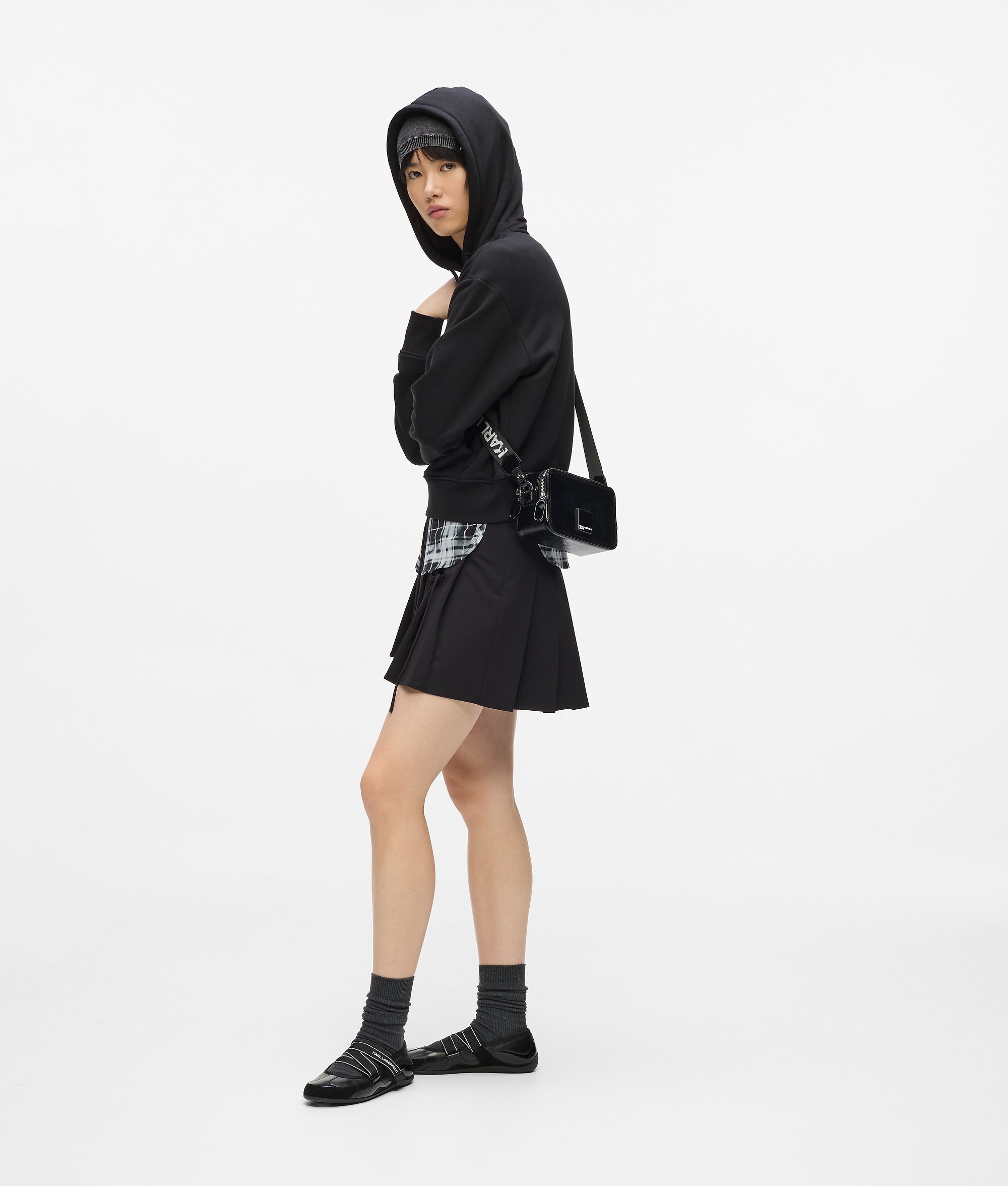 This classic camera bag is given a contemporary twist. with a glossy finish and a webbing crossbody strap embellished with bold KARL LAGERFELD JEANS branding. Perfect for navigating the city.