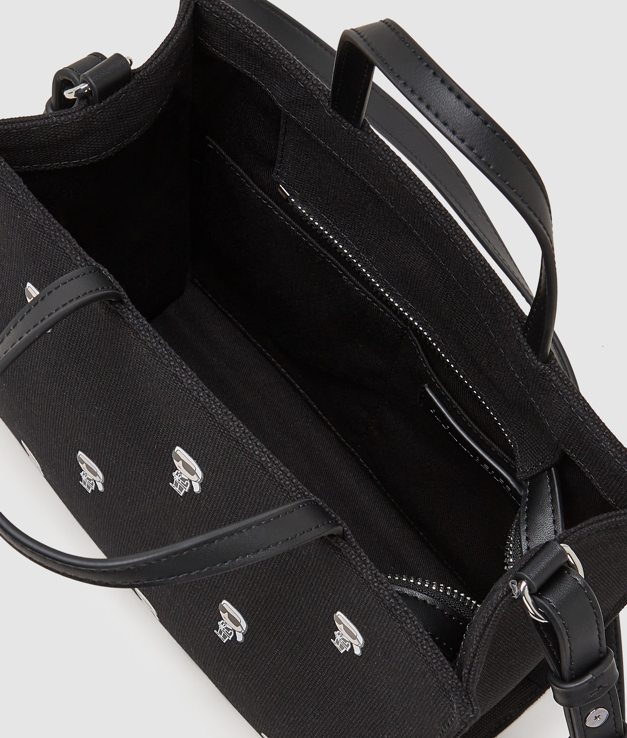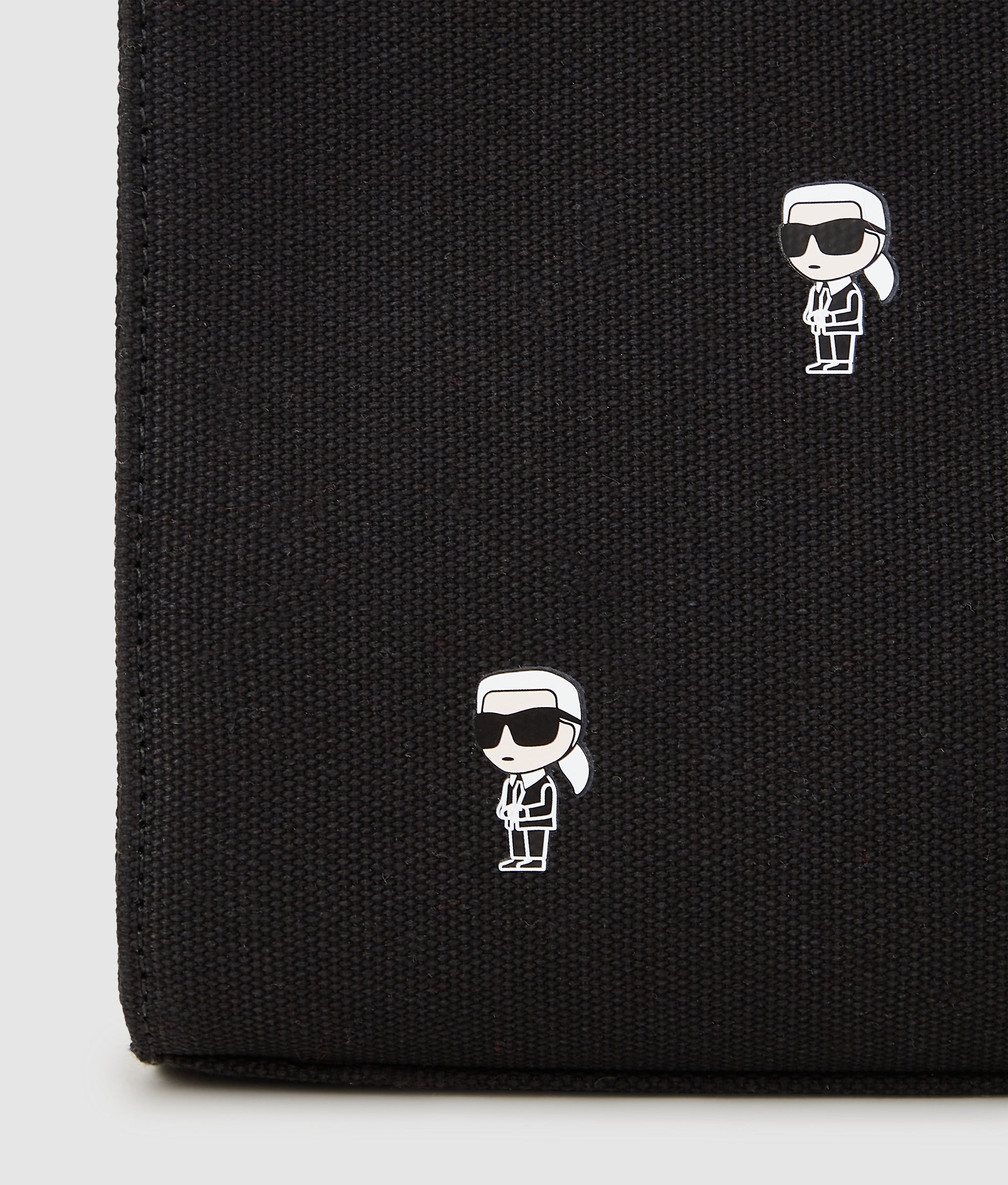 Blending functional design with statement artwork. this structured tote bag in recycled cotton features a square silhouette. twin handles and an all-over Ikon print.