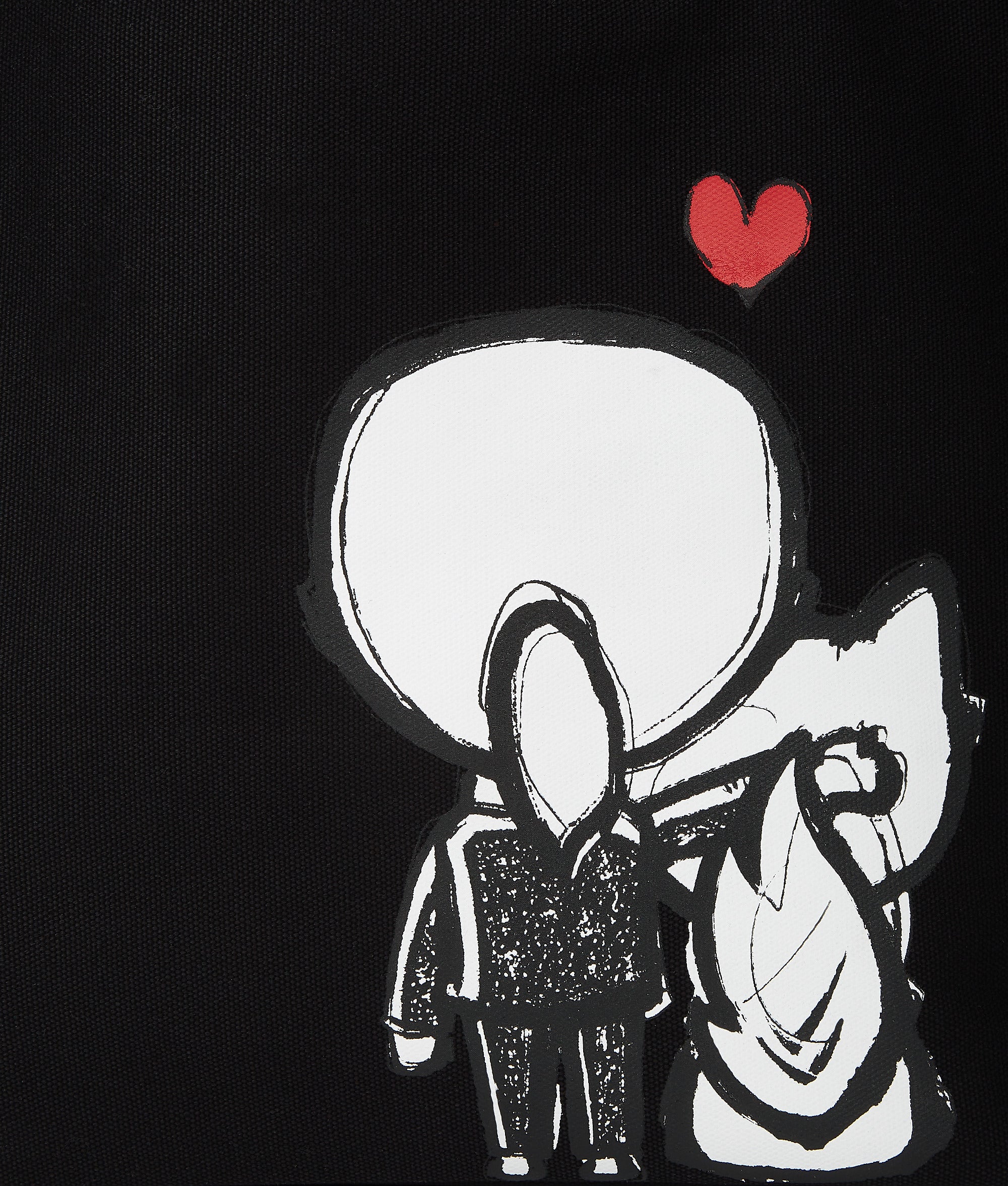 A soft cotton shopper featuring playful Ikon Karl and Choupette Hearts artwork and a bold contrast lining. With a secure button closure and twin handles. it blends everyday practicality with charm.