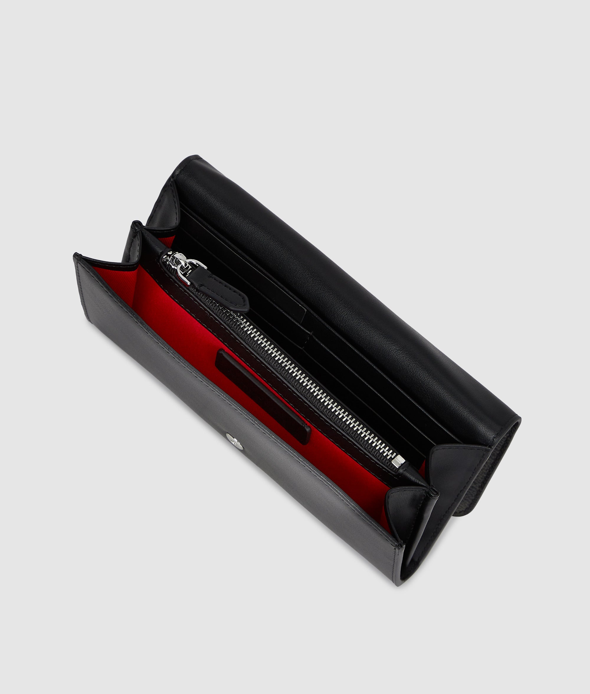 Playful artwork meets timeless design in this classic flap closure wallet. with multiple card slots and a zipped coin pocket for effortless organization. A bold color accent adds a unique touch.