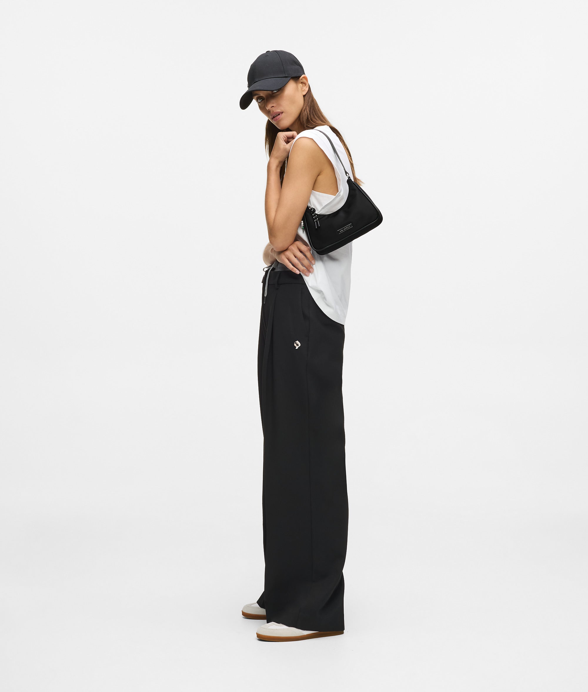 Ikon Karl and Choupette charms add a playful touch to this mini shoulder bag. with an adjustable strap for comfortable wear. Featuring a zip closure and anchored by a refined KARL LAGERFELD logo plaque.