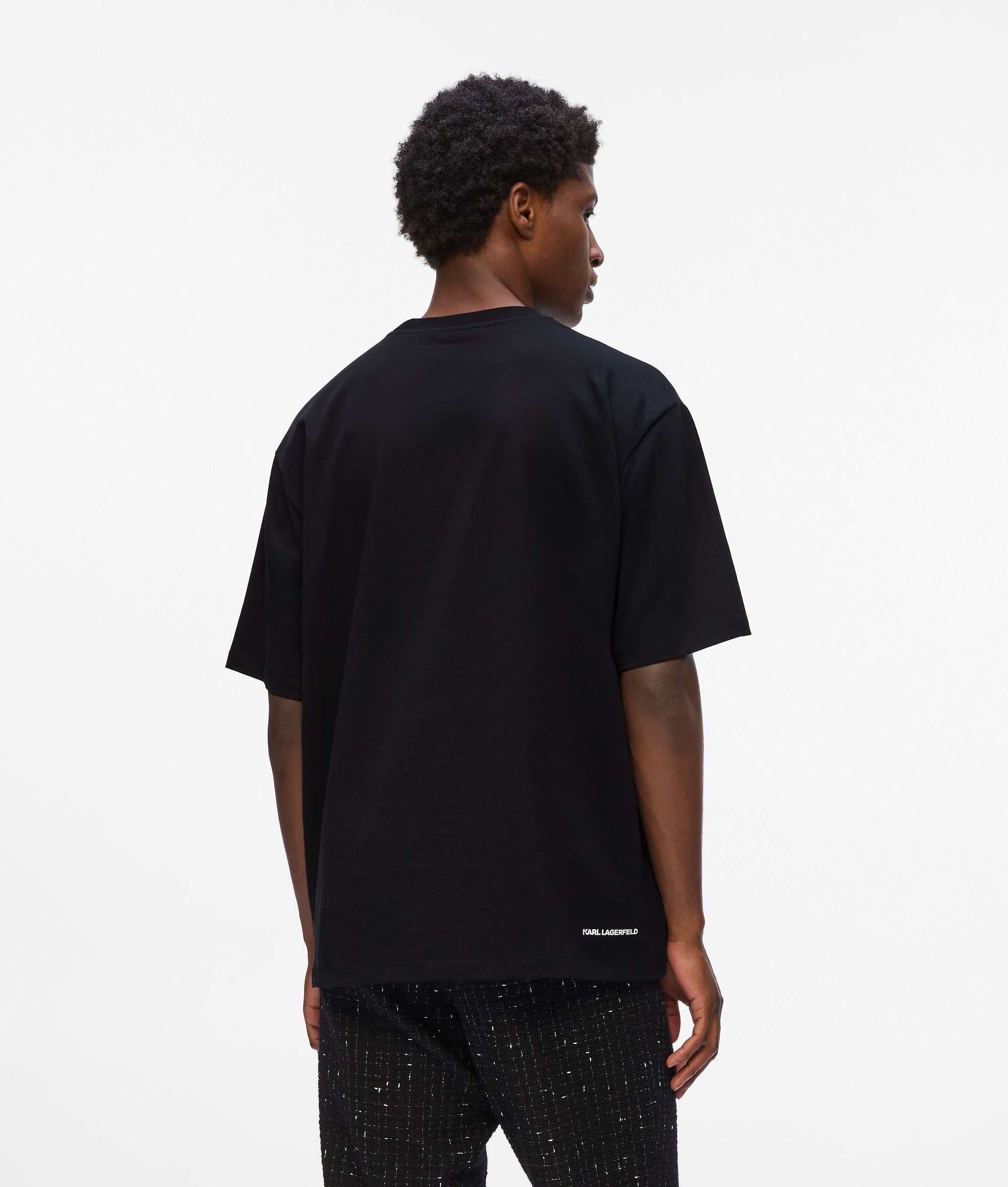 Vibrant Ikon Karl artwork with embroidered details takes center stage of this versatile T-shirt. Featuring a classic crewneck and a ribbed collar. it blends a timeless silhouette with unique style.