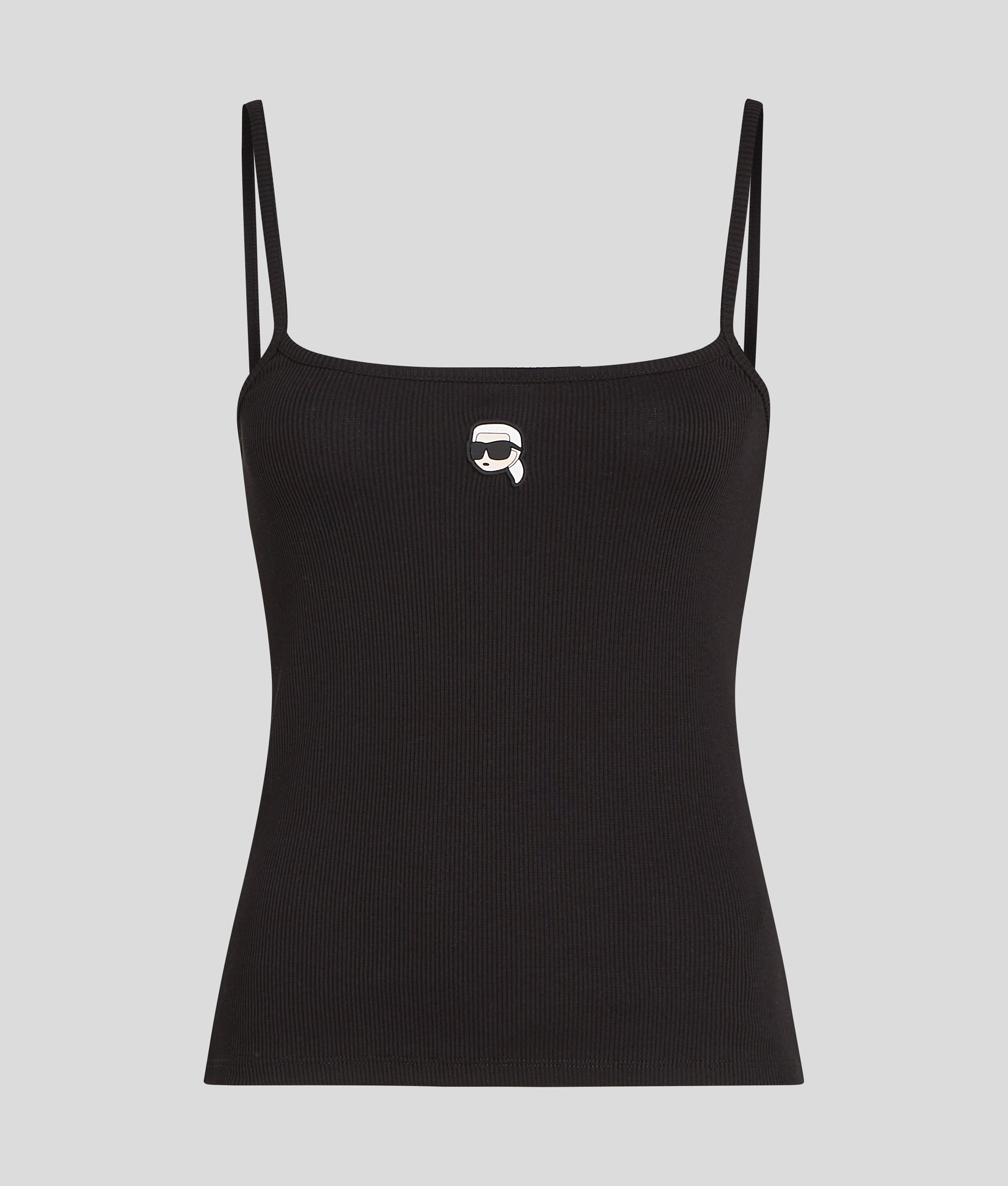 A sleek. form-fitting silhouette defines this tank top. featuring a chic square neckline and slim shoulder straps. The IKON Karl patch at the front adds a playful touch. perfect for effortless style.