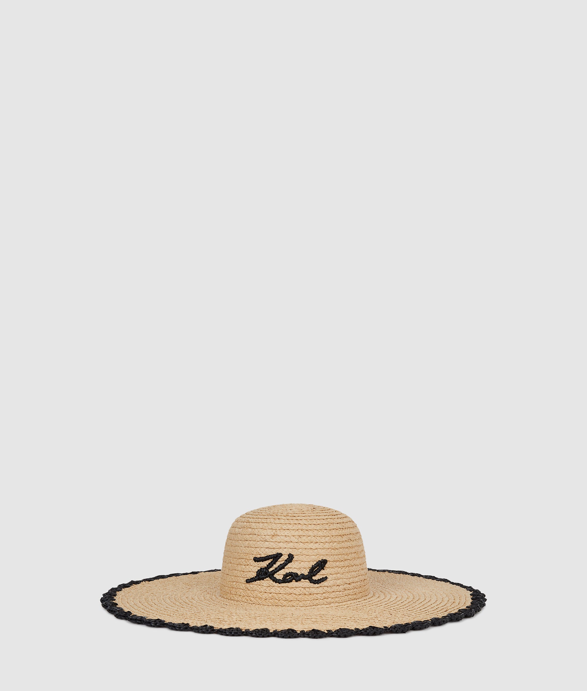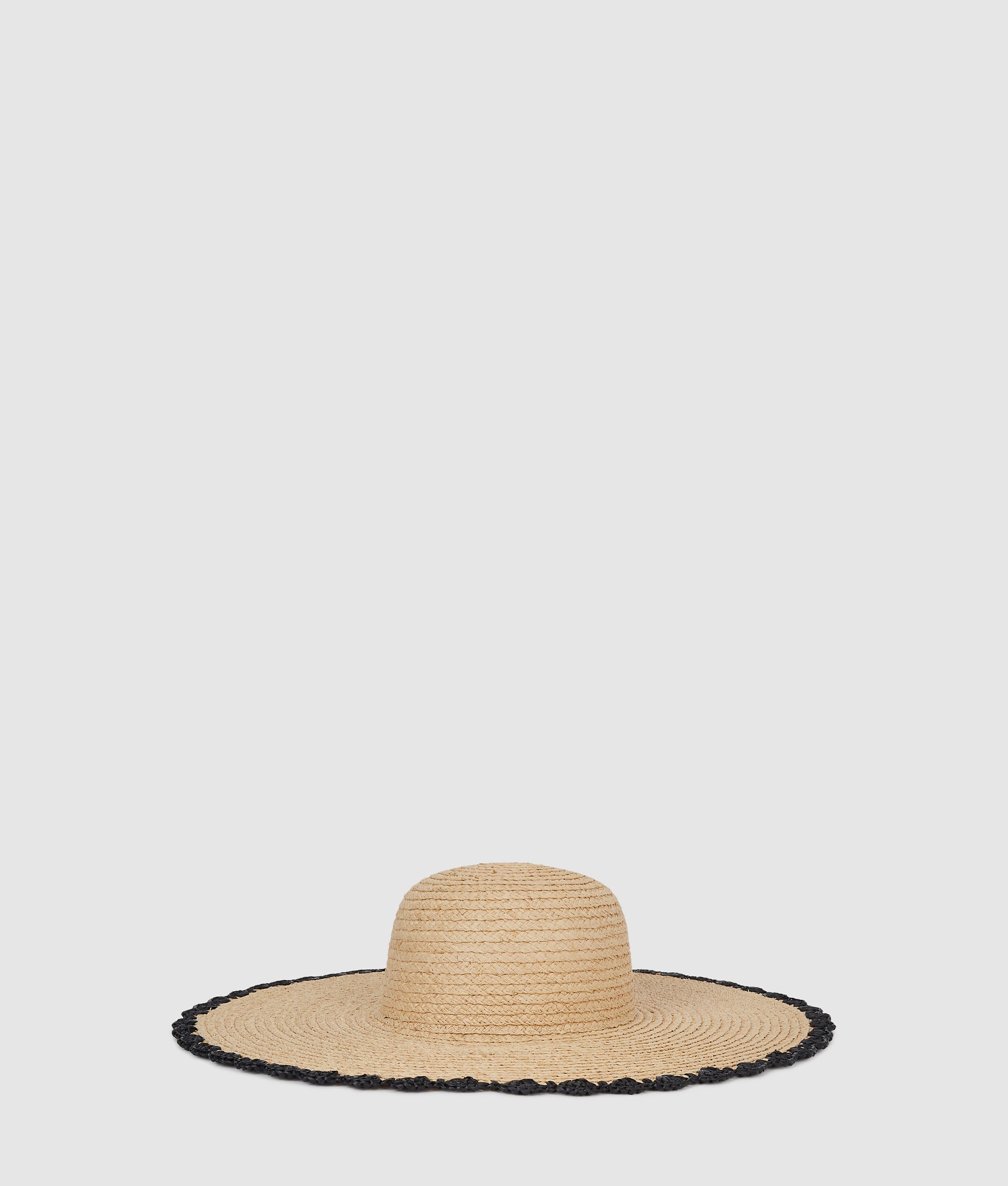 An ultra-chic beach hat with a wide. scalloped-edge brim to frame the face with effortless elegance.