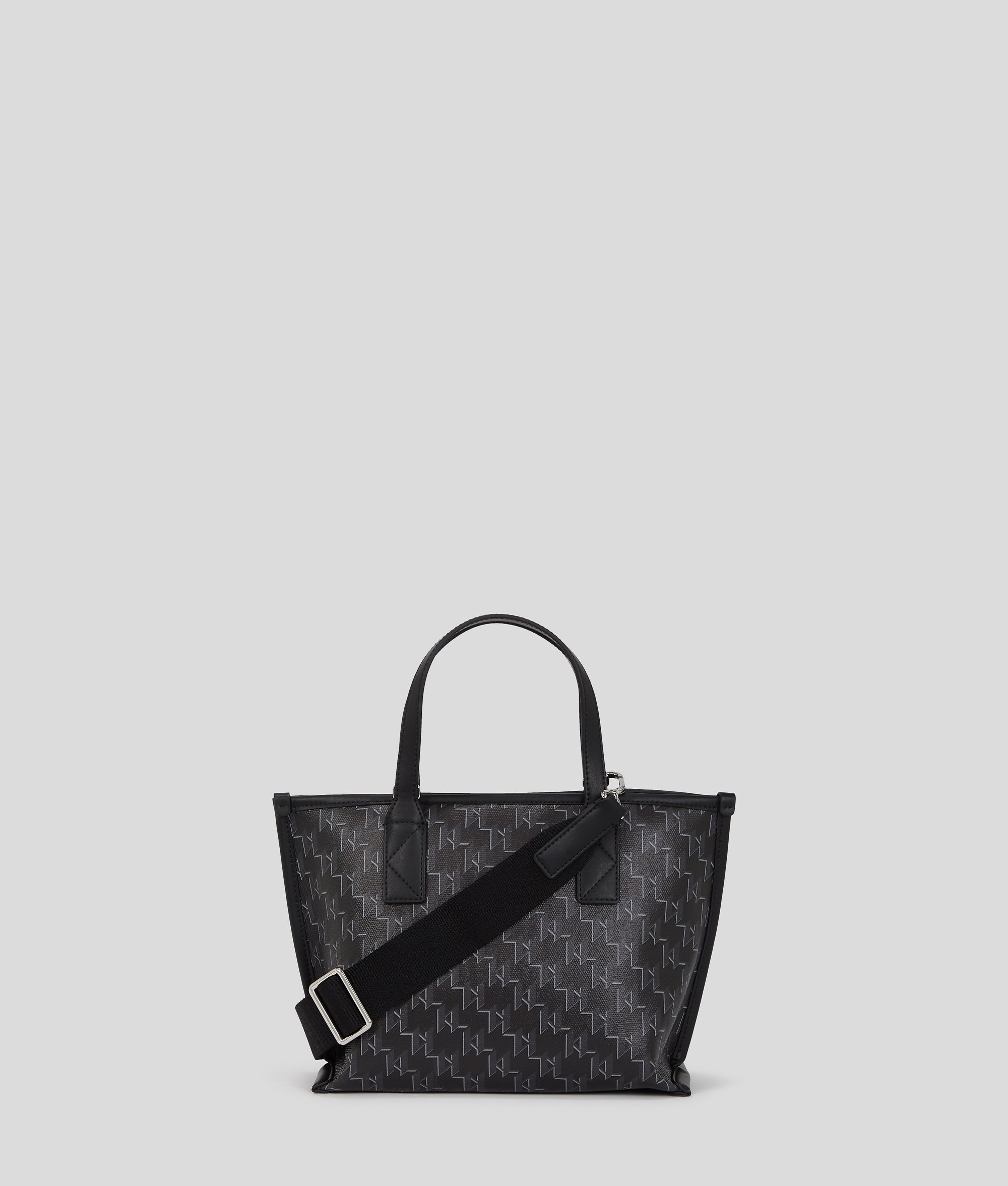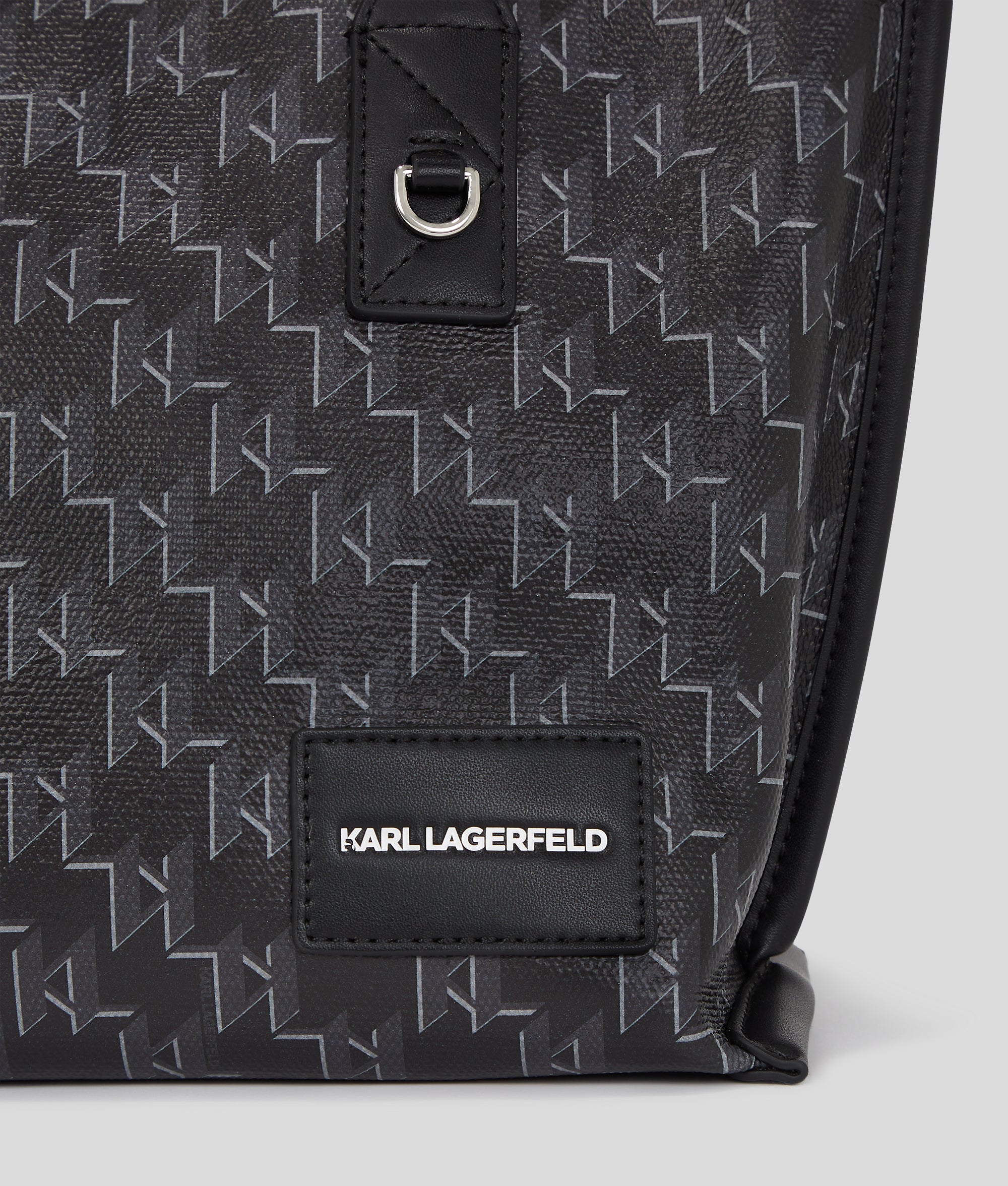 This small tote bag showcases a chic all-over KARL Monogram design. complemented by a zip-top closure and versatile straps for essential practicality.