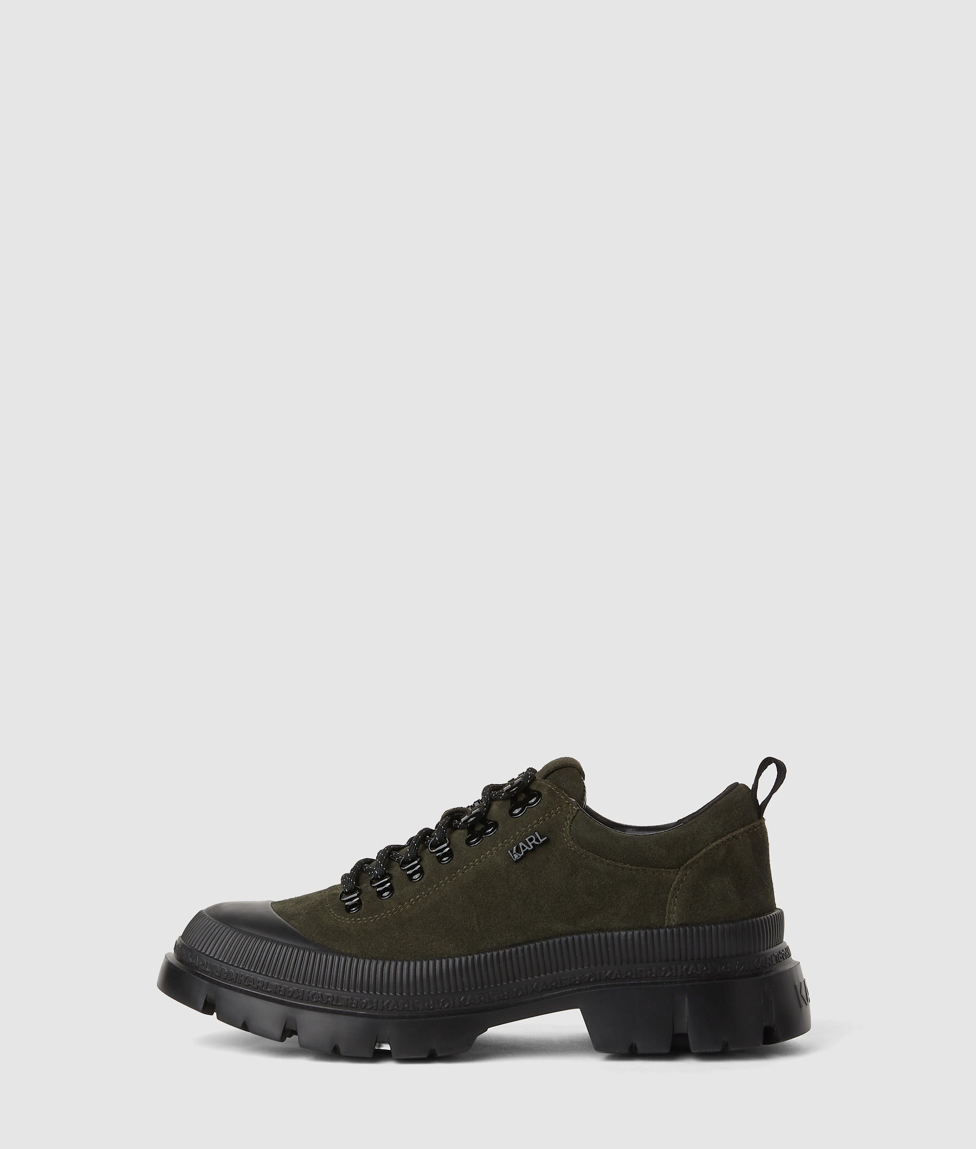 Add the element of adventure to any look with these hiker shoes. featuring rounded laces and a chunky lug sole. With sophisticated suede panelling and subtle branding. they blend refinement with rugged details.? ?
