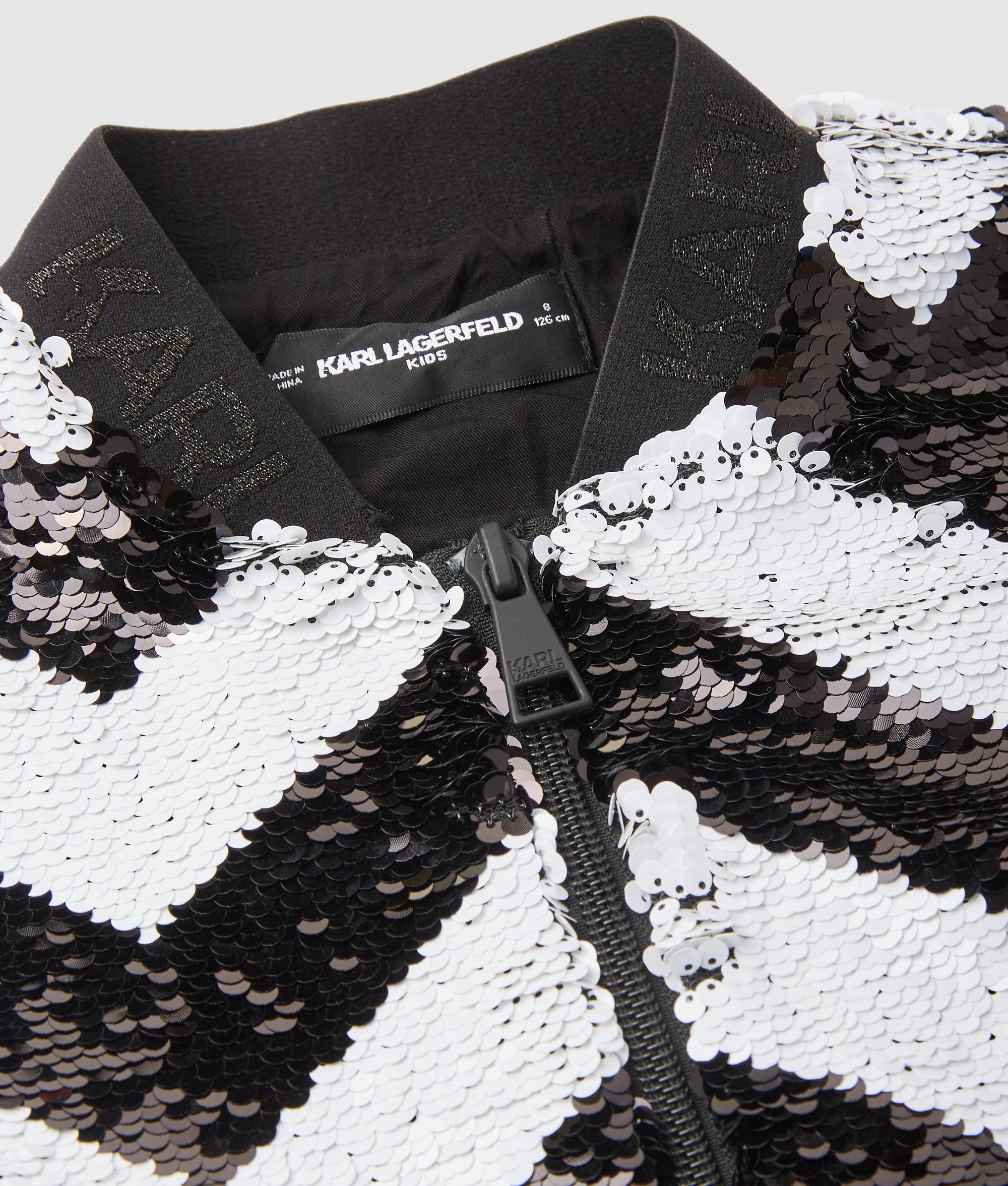 Zigzag-patterned sequins catch the light with every move in this short-sleeved dress designed for playful days and nights.