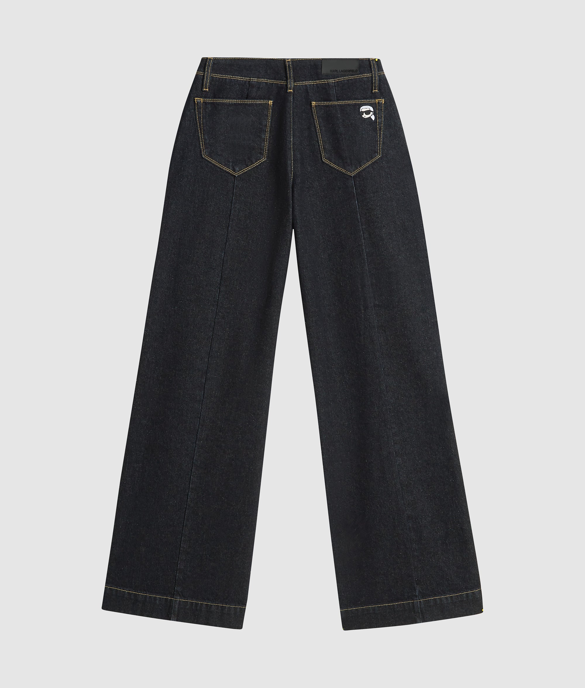 Ikon detailing and an exposed zip fly bring a playful edge to these wide-leg jeans. The ultra-flattering silhouette pairs effortlessly with a cropped jacket or tucked-in knit.