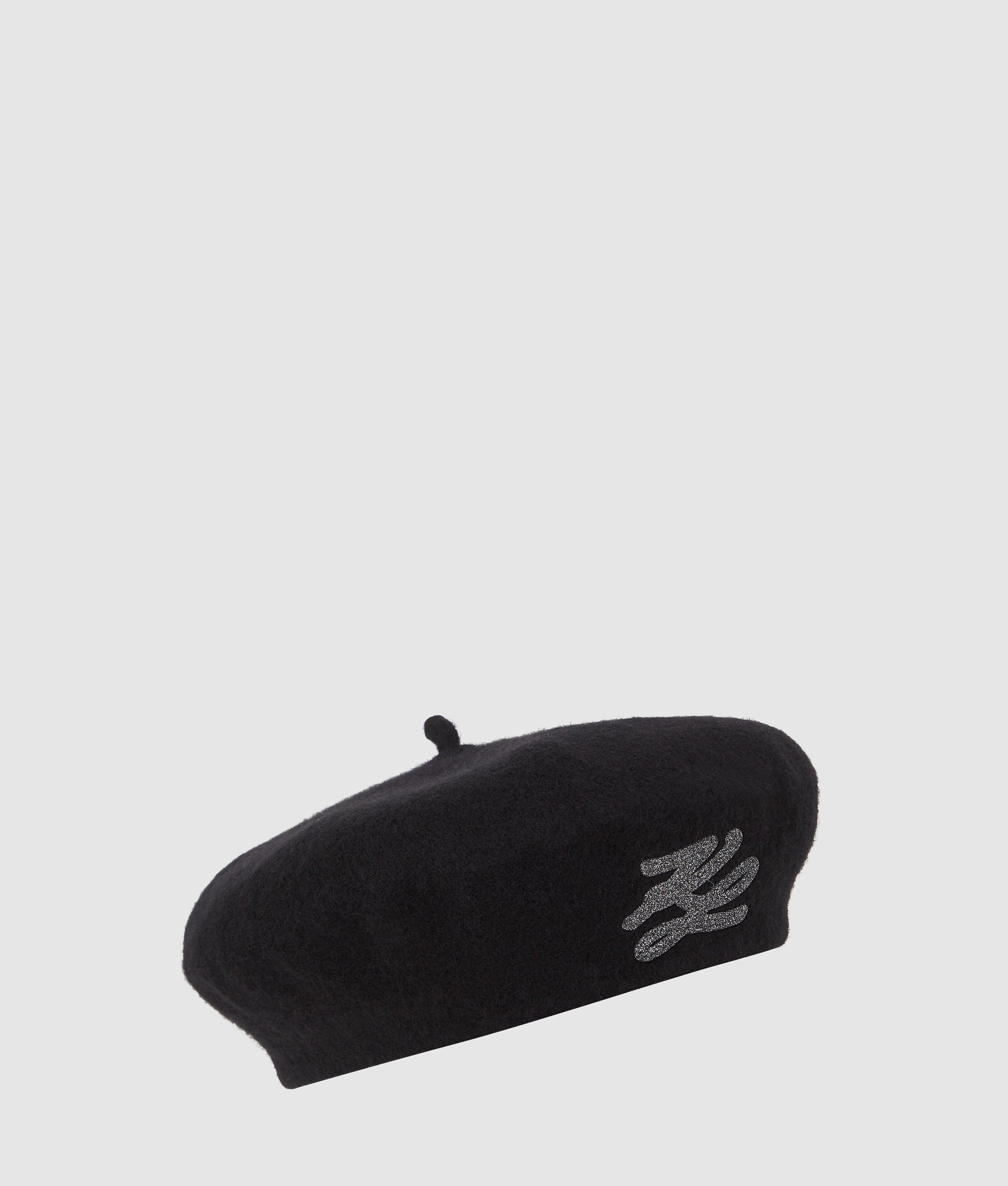 Channel Parisian chic with this wool beret. finished with a soft crown. fitted headband. and glittering Autograph logo.