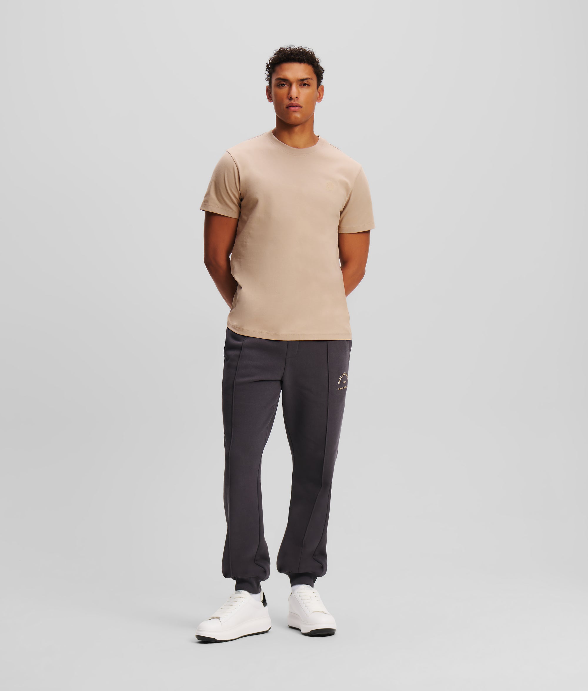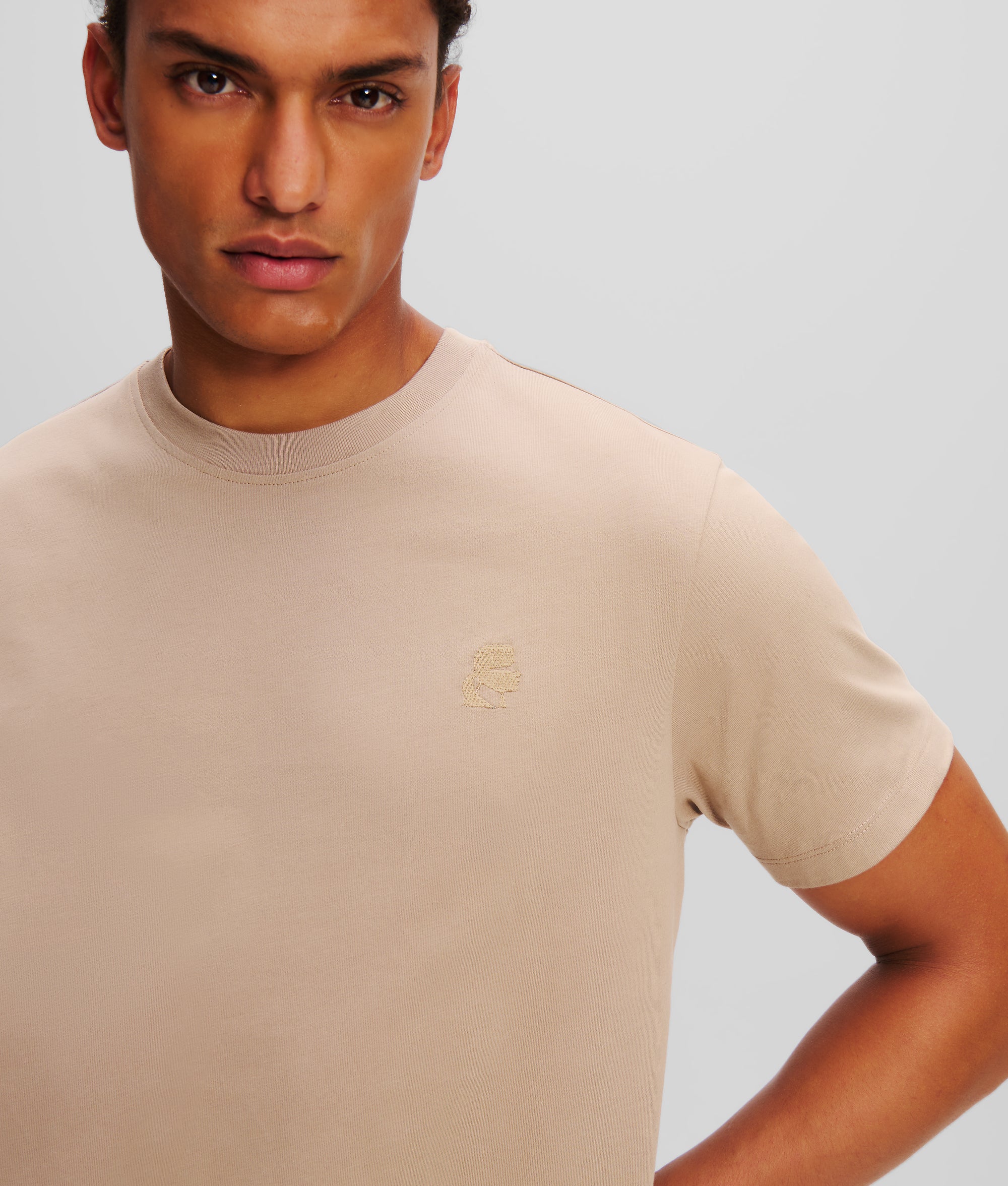 For minimalist yet iconic styling. this classic crew neck T-shirt features subtle KARL Kameo embroidery at the chest. bringing a touch of exclusivity to this everyday essential.?