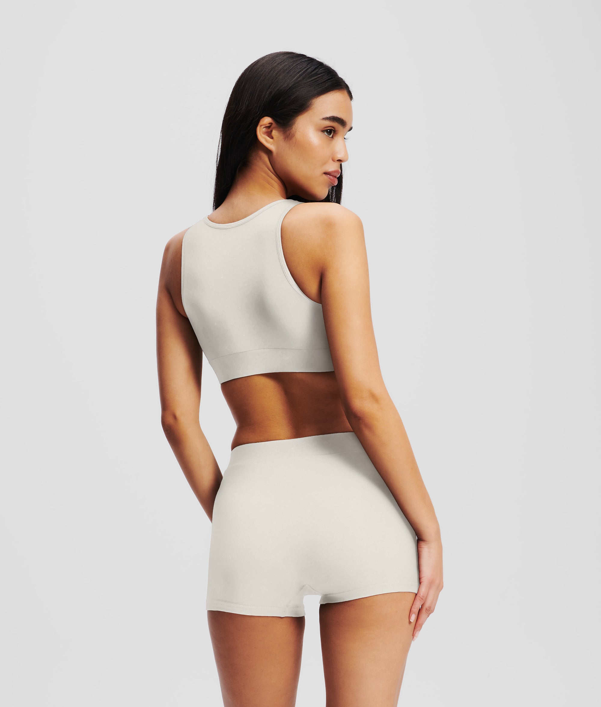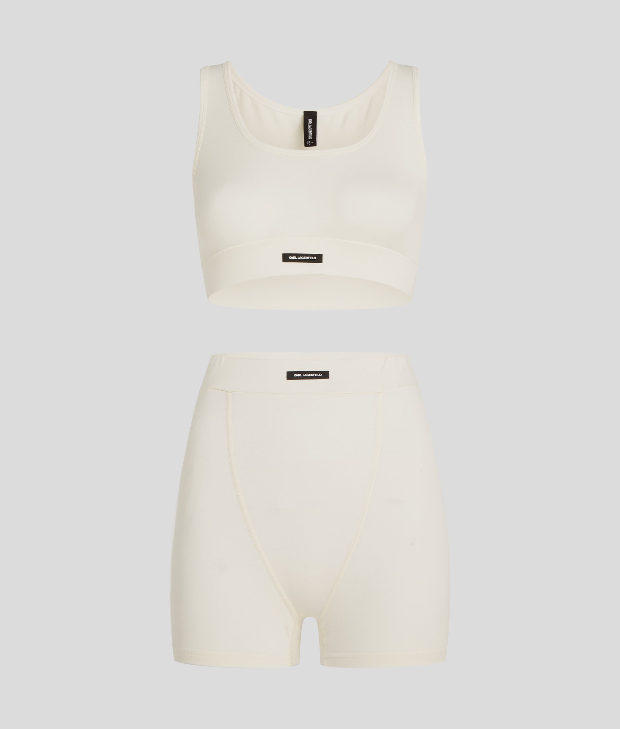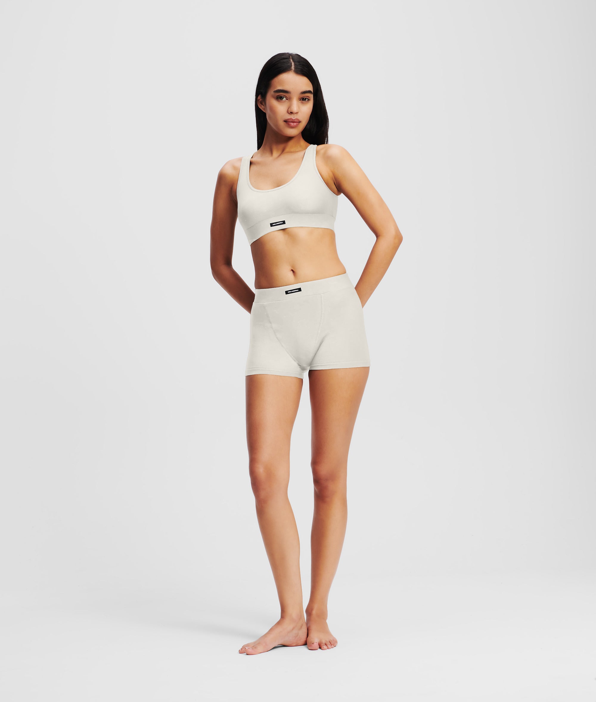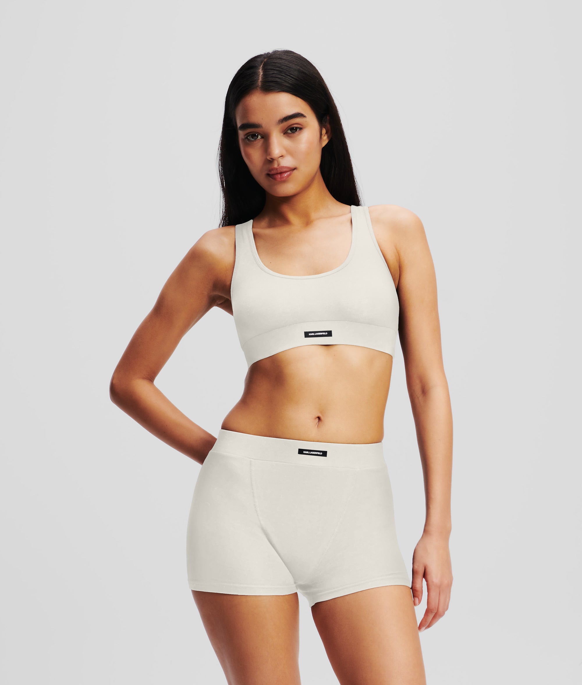Discover a super soft two-piece underwear gift set featuring a non-padded bra paired with boxer-style shorts for ultimate. all-day comfort. Subtle KARL LAGERFELD branding adds a signature touch.