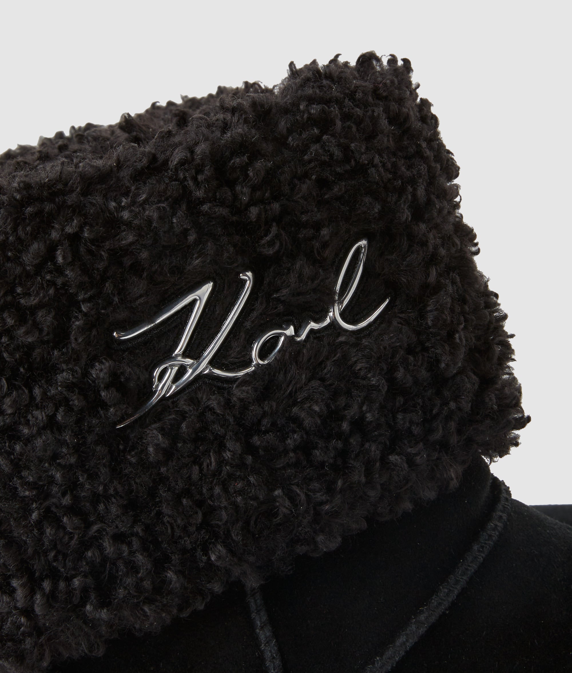 Comfort meets style in these high wedge. mid-calf boots with a plush lining and collar. The soft suede panelling is accented by artistic whipstitch detailing. while an elegant Karl Signature anchors the look.