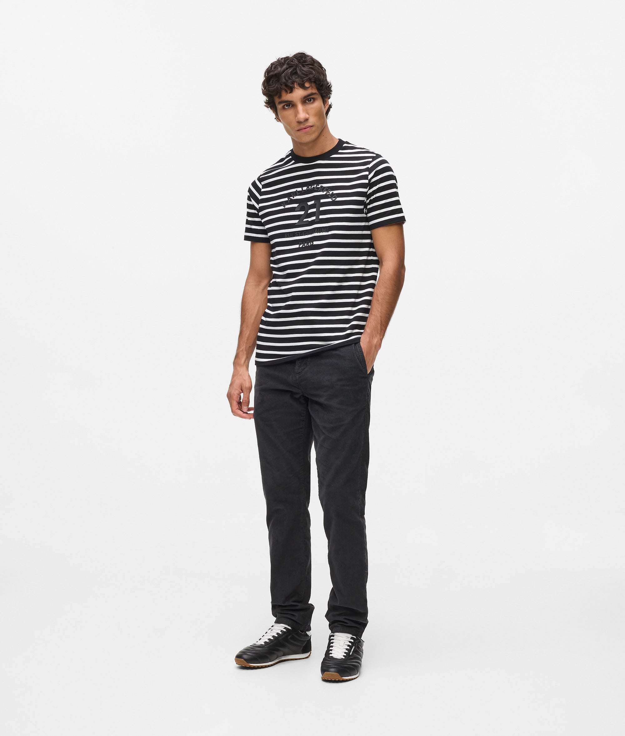 This striped T-shirt features a classic crew neck with contrasting piping and a bold 3D logo at the chest. Made from soft cotton jersey. it offers effortless style and comfort.